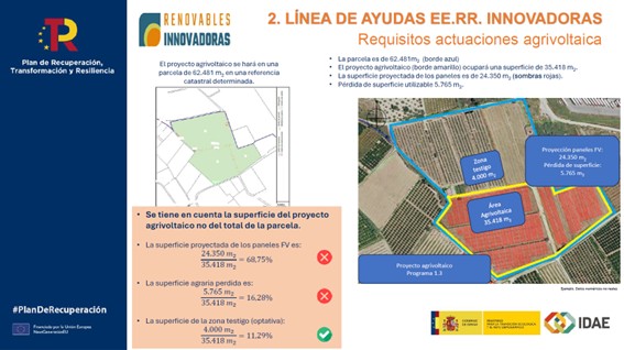 IDAE celebró el 16 de enero un webinario informativo relativo a esta nueva convocatoria del programa de Energías Renovables Innovadoras. Se trata de una cita imprescindible para todos los interesados en la presentación de solicitudes de ayudas para la implantación de proyectos agrovoltaicos en España que se puede visualizar en el siguiente enlace: https://www.idae.es/evento/webinar-programa-renoinn-2-renovables-innovadoras-almacenamiento-y-bomba-de-calor